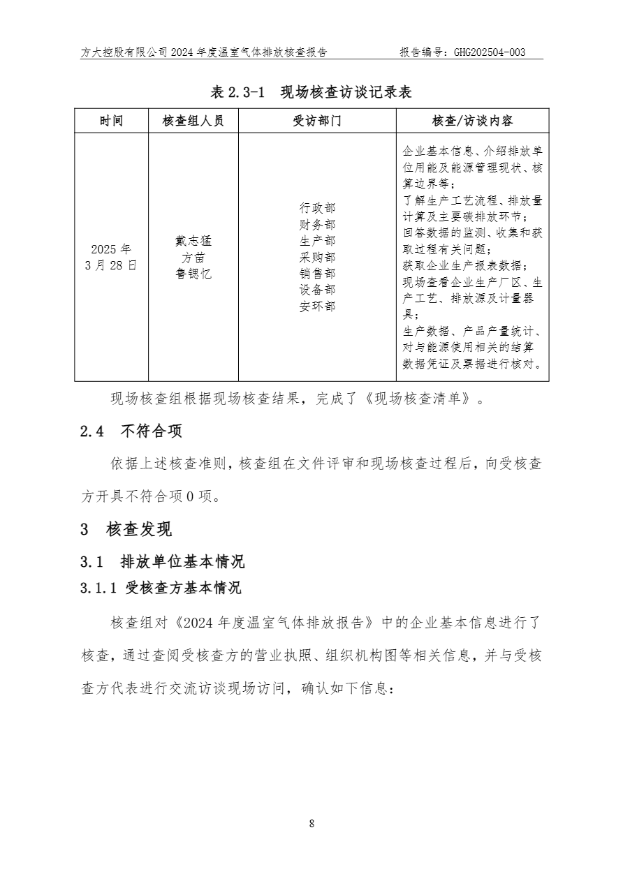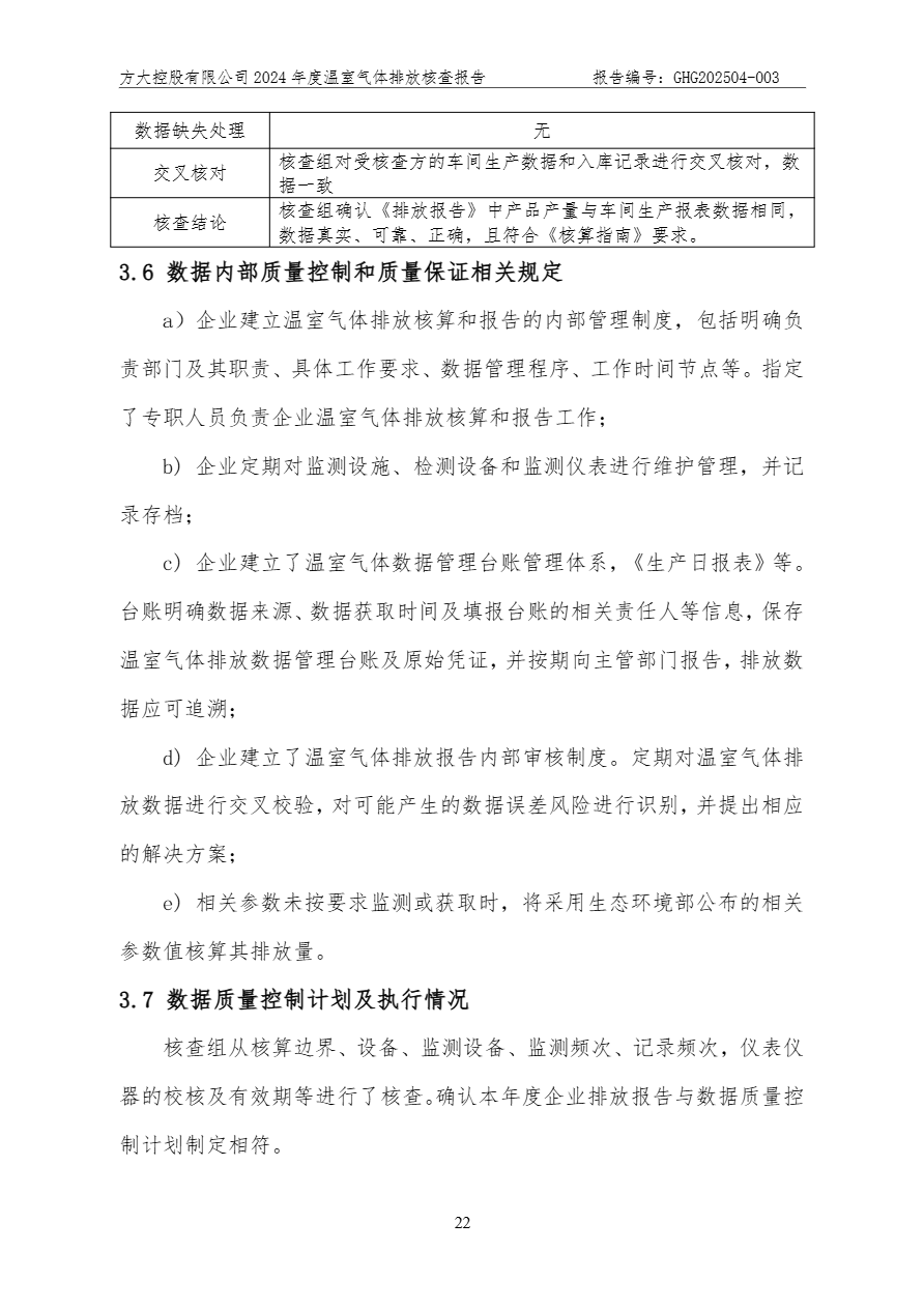方大控股有限公司溫室氣體排放核查報告